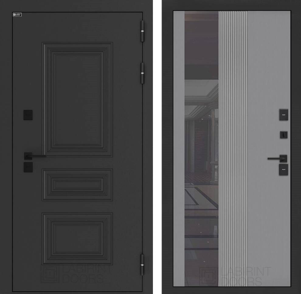 Входные двери Аляска лайт с терморазрывом с Зеркалом 32 тонированным - Серый рельеф софт