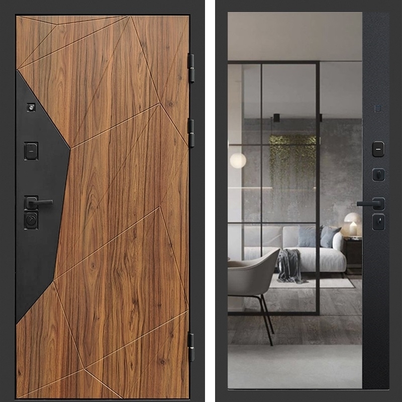 Входная дверь Авангард зеркало с фацетом Черный кварц