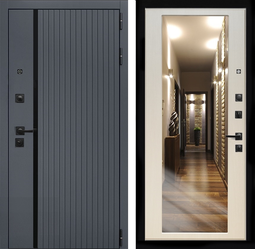 Входная дверь Интеко Агат Графит Беленый дуб - с зеркалом