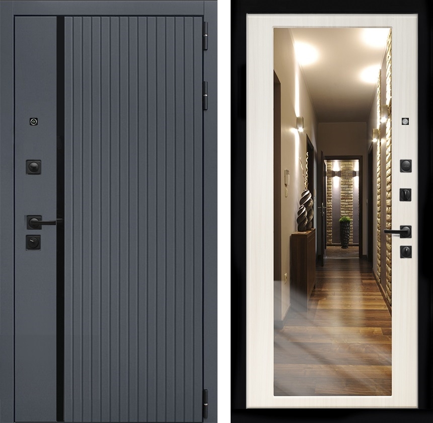 Входная дверь Интеко Агат Графит Сандал белый - с зеркалом