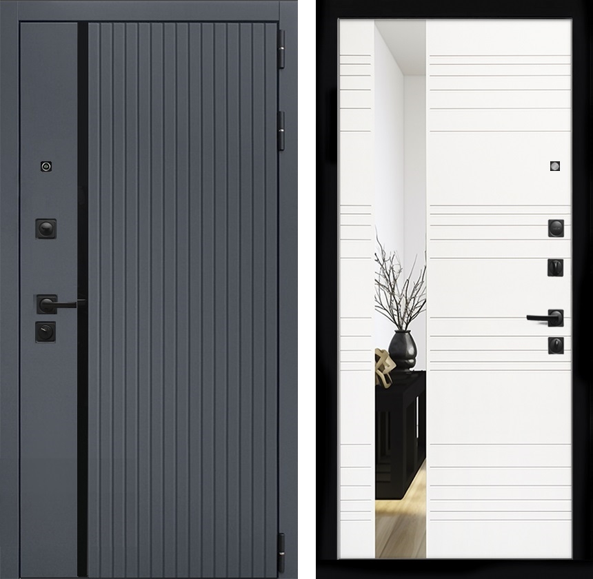 Входная дверь Интеко Агат Графит Сити Белый мат - с зеркалом