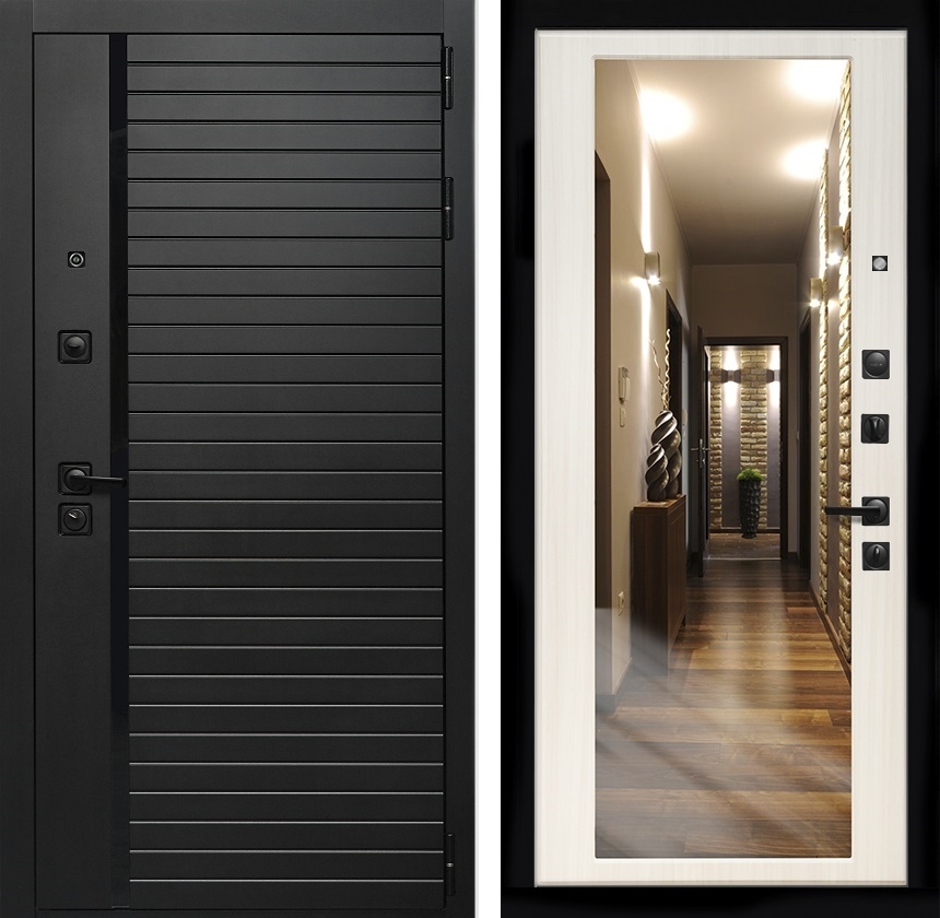 Входная дверь Интеко Агат Сандал белый - с зеркалом