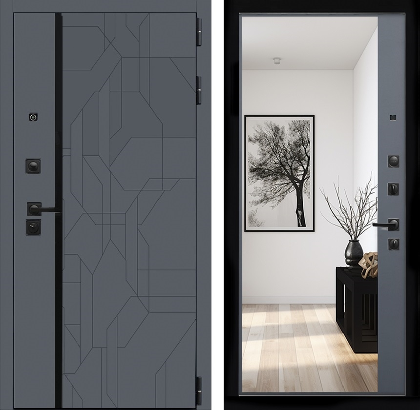 Входная дверь Интеко Верона Графит - с зеркалом панорама