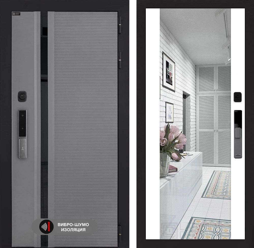 Входная дверь Пиано Смарт 2.0 с зеркалом Максимум - Белый софт