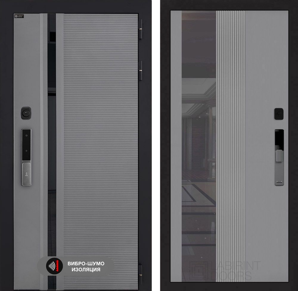 Входная дверь Пиано Смарт 2.0 с зеркалом (тонированным) 32 - Серый рельеф софт