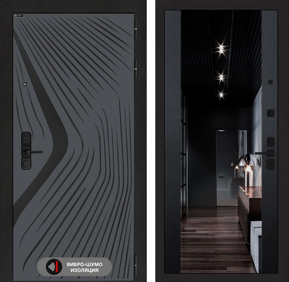 Входная стальная дверь Лабиринт ISSIDA с Зеркалом тонированным - Черный кварц
