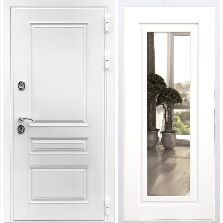 Входная белая дверь Император ФЛ-120 с Зеркалом Белый силк сноу