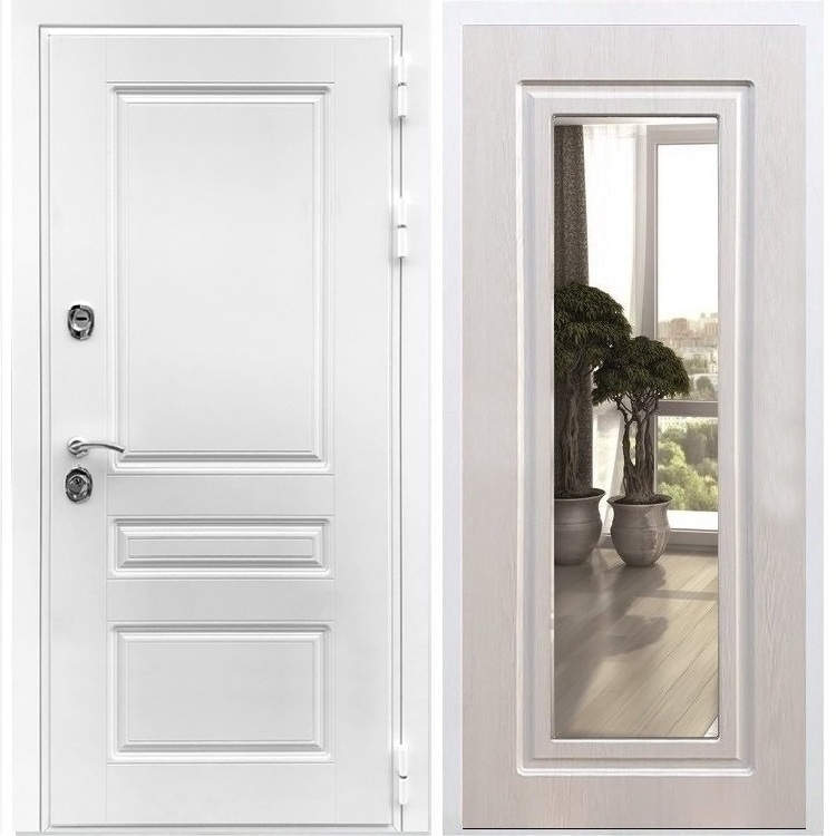 Входная белая дверь Император ФЛ-120 с Зеркалом Лиственница беж