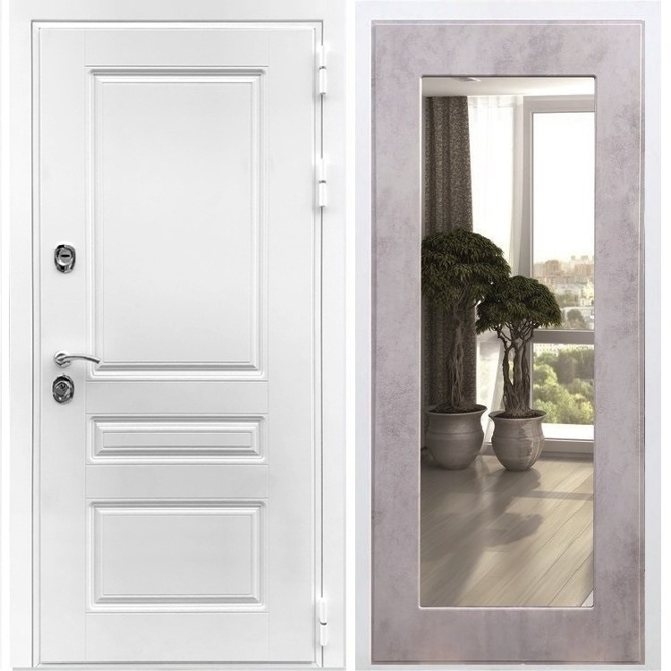 Входная белая дверь Император Пастораль Бетон светлый с Зеркалом