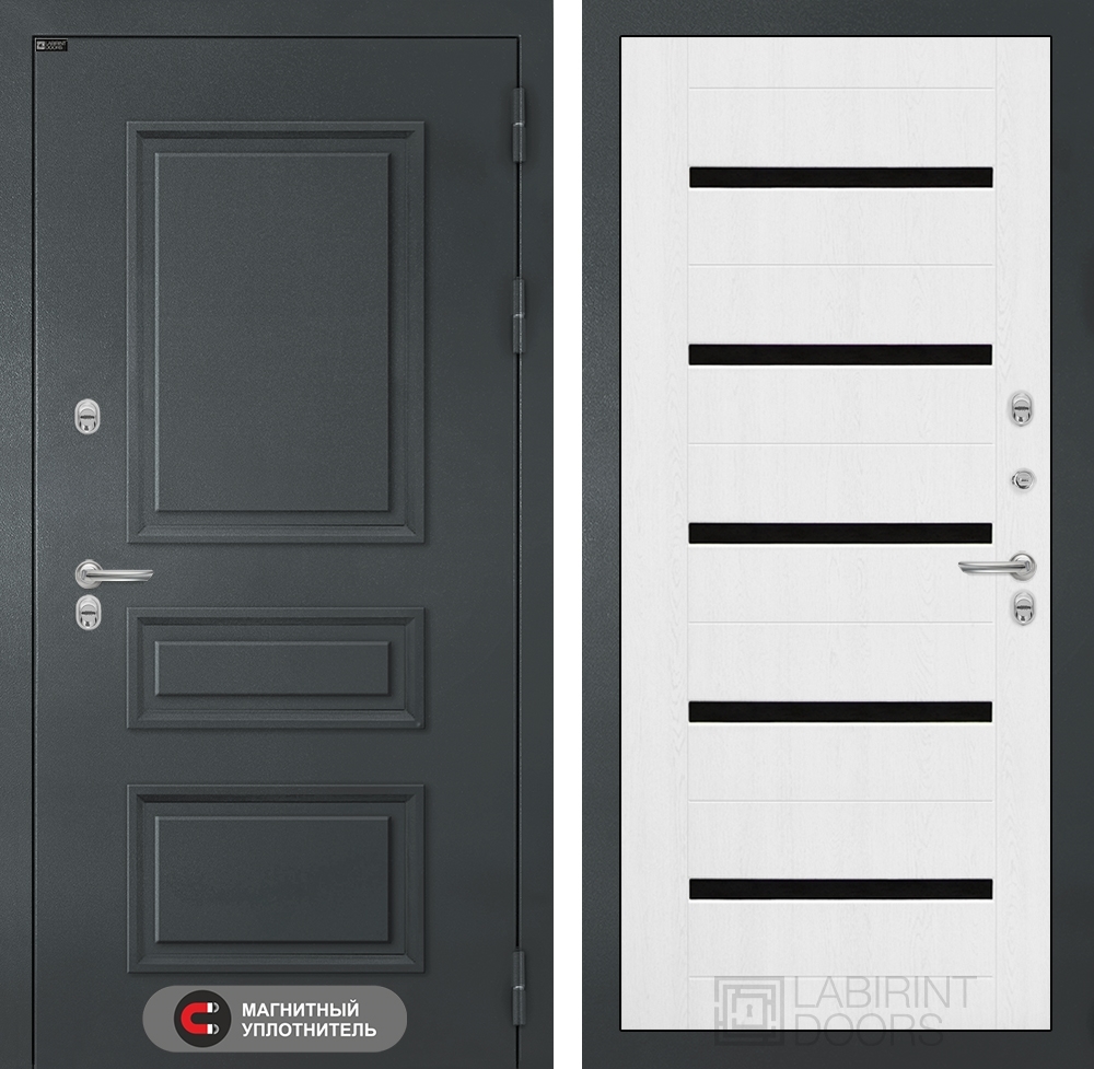 Входная стальная дверь Лабиринт Атлантик 01 - Белое дерево, стекло черное