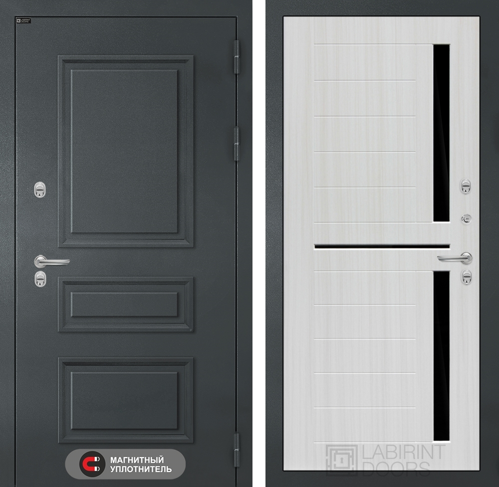 Входная дверь Атлантик 02 - Сандал белый, стекло черное