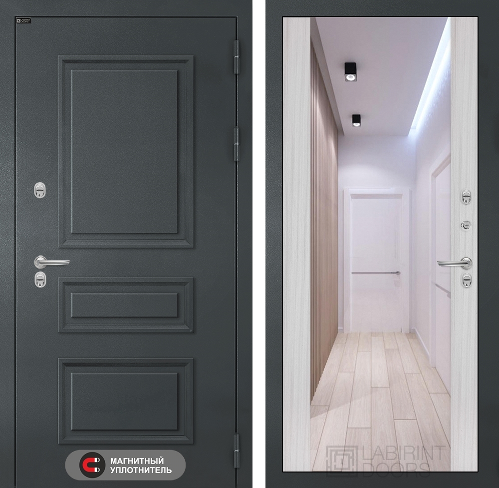 Входная стальная дверь Лабиринт Атлантик с Зеркалом Максимум - Сандал белый