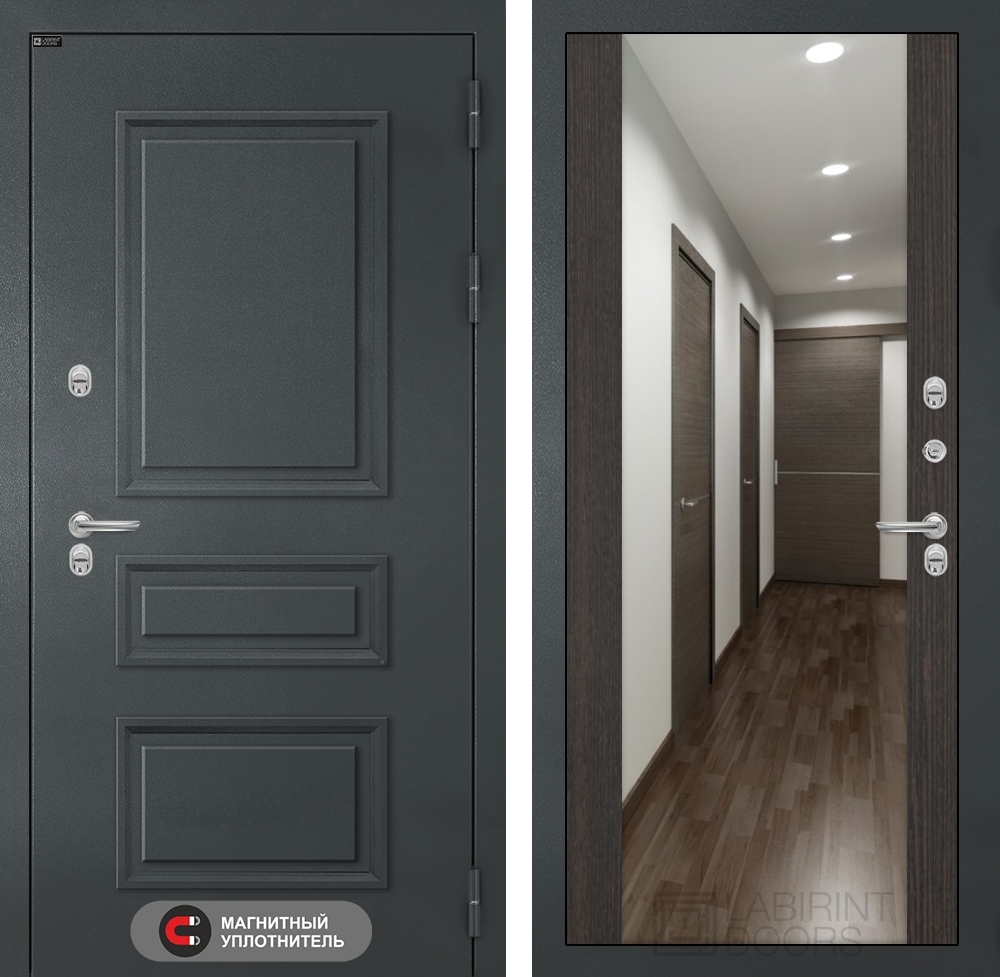 Входная стальная дверь Лабиринт Атлантик с Зеркалом Максимум - Венге