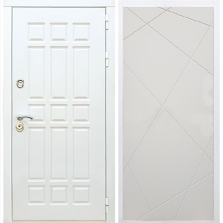 В комплект двери входит - Полотно + короб, декоративная панель с двух сторон, 2 - замка, личинка, ручки, декоративные накладки.