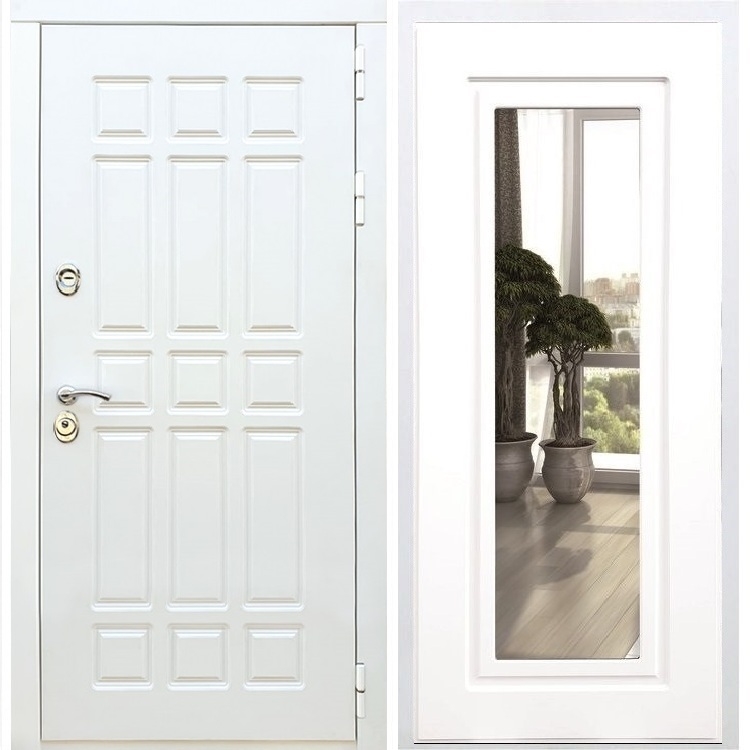 Входная белая дверь DALLAS ФЛ-120 с Зеркалом Белый силк сноу
