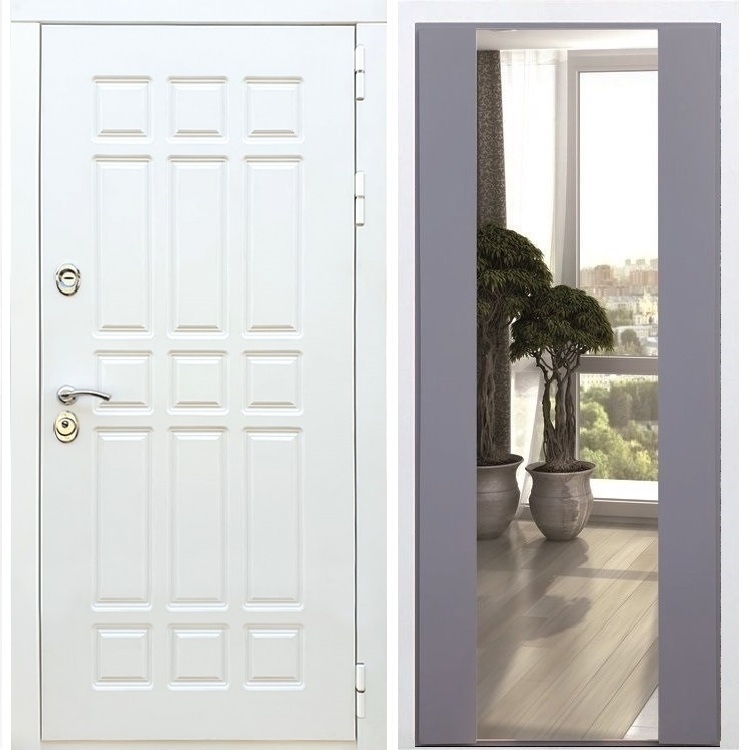 Входная белая дверь DALLAS с Зеркалом СБ -16 Силк титан