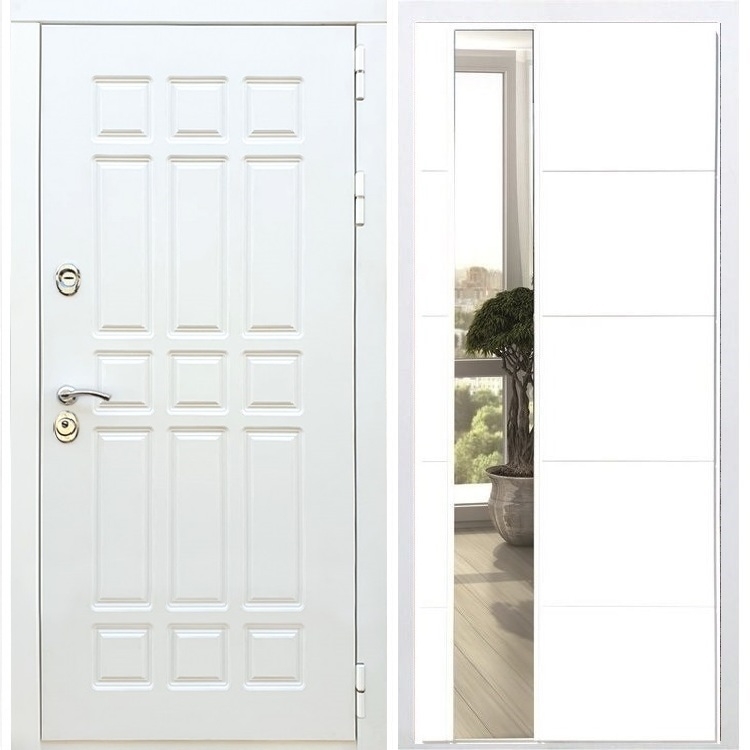 Входная белая дверь DALLAS с Зеркалом СБ -19 Белый силк сноу