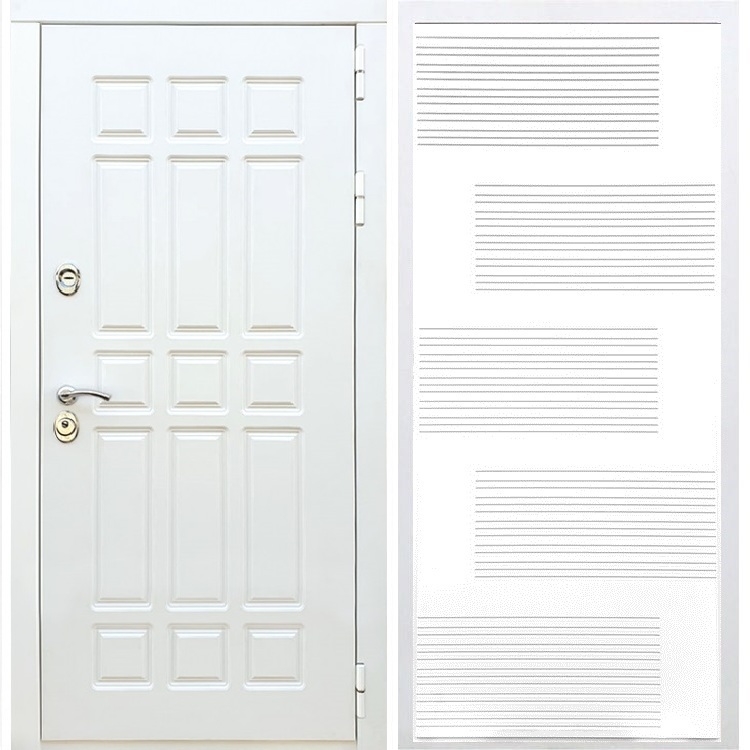 В комплект двери входит - Полотно + короб, декоративная панель с двух сторон, 2 - замка, личинка, ручки, декоративные накладки.