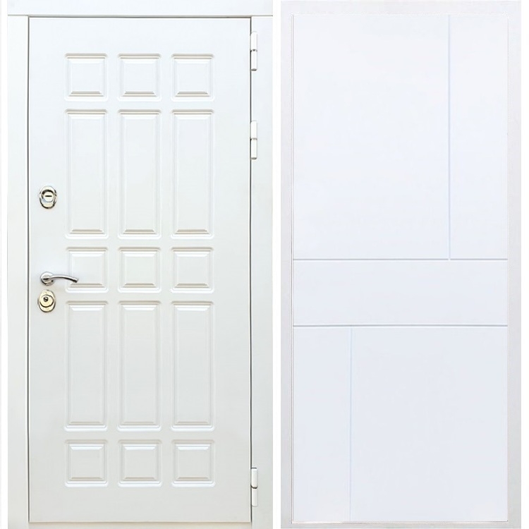 В комплект двери входит - Полотно + короб, декоративная панель с двух сторон, 2 - замка, личинка, ручки, декоративные накладки.