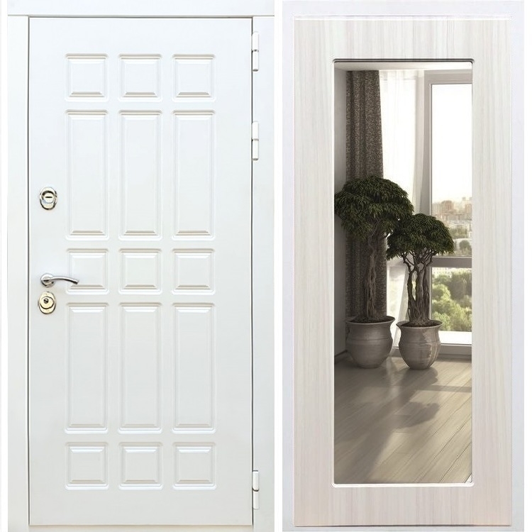 Входная белая дверь DALLAS Пастораль Сандал белый с Зеркалом