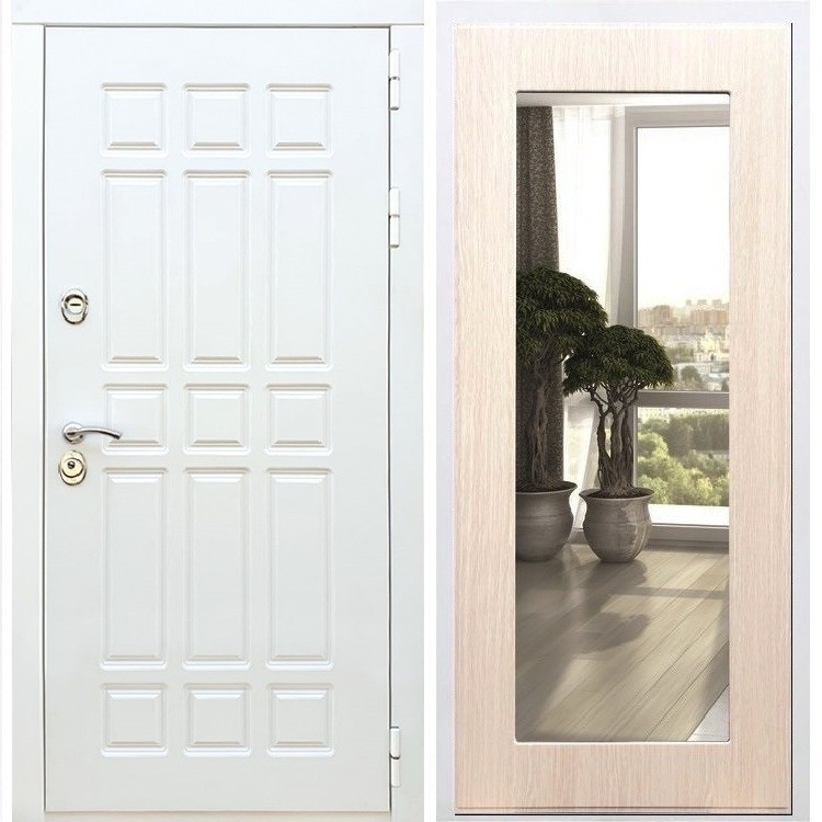 Входная белая дверь DALLAS Пастораль Дуб белёный с Зеркалом