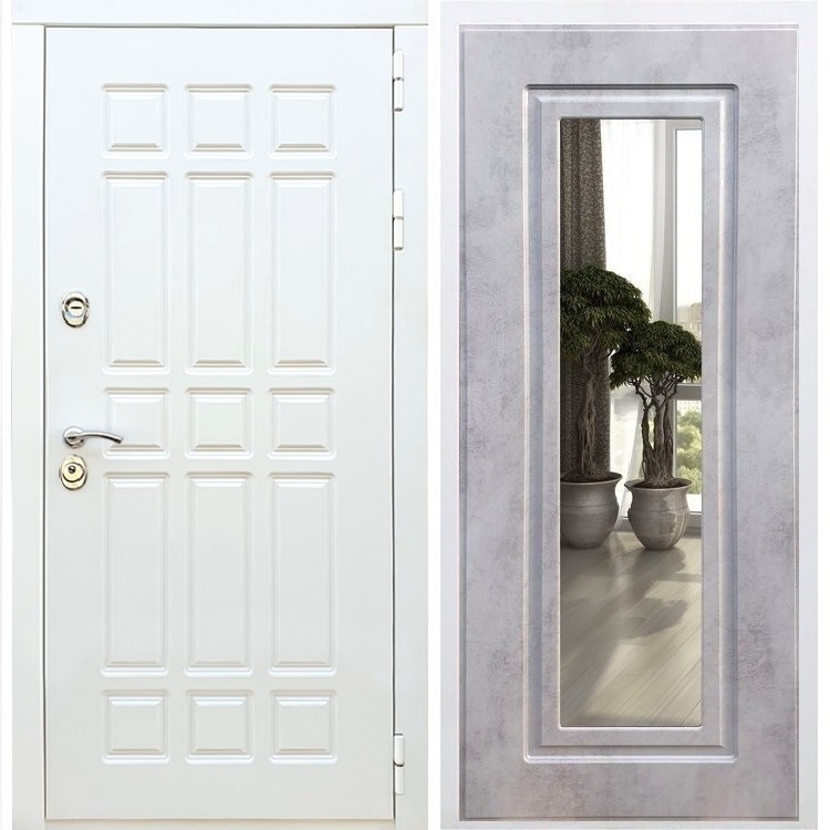 Входная белая дверь DALLAS ФЛ-120 с Зеркалом Бетон темный