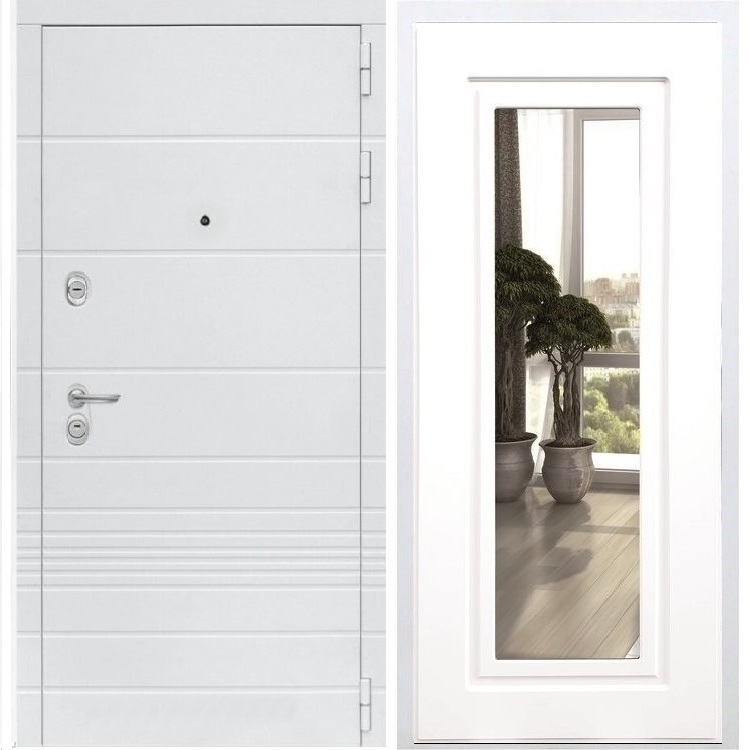 Входная белая дверь Италия ФЛ-120 с Зеркалом Белый силк сноу
