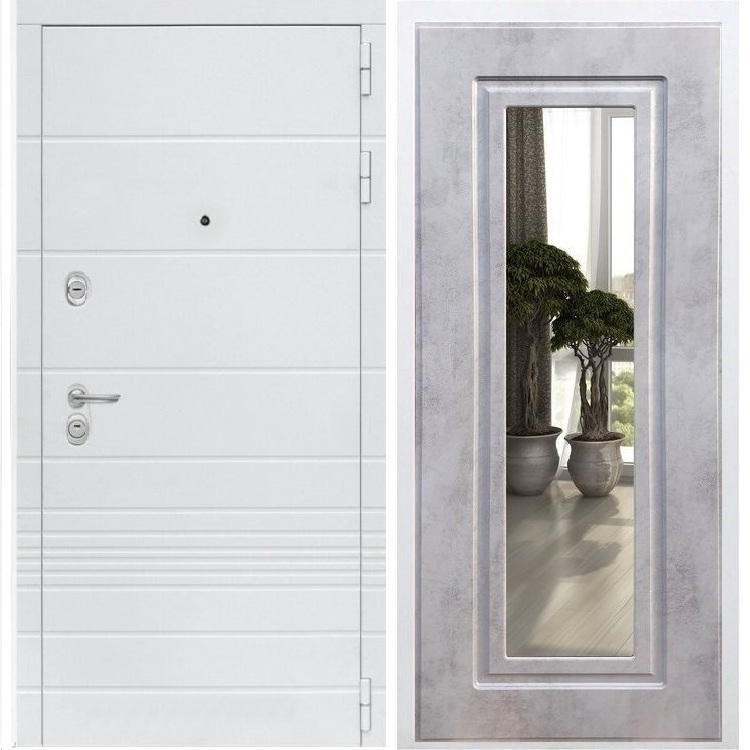 Входная белая дверь Италия ФЛ-120 с Зеркалом Бетон темный