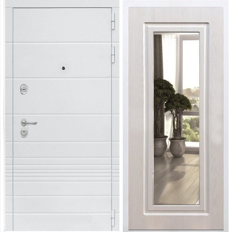 Входная белая дверь Италия ФЛ-120 с Зеркалом Лиственница беж