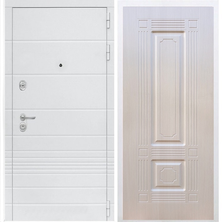Входная белая дверь Италия ФЛ-2 Лиственница беж