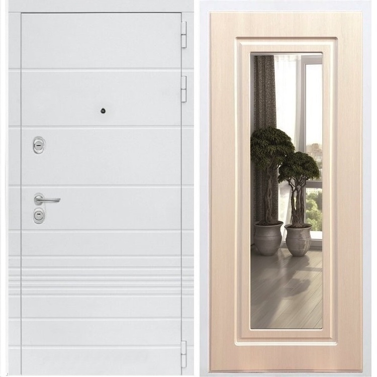 Входная белая дверь Италия с Зеркалом Беленый дуб