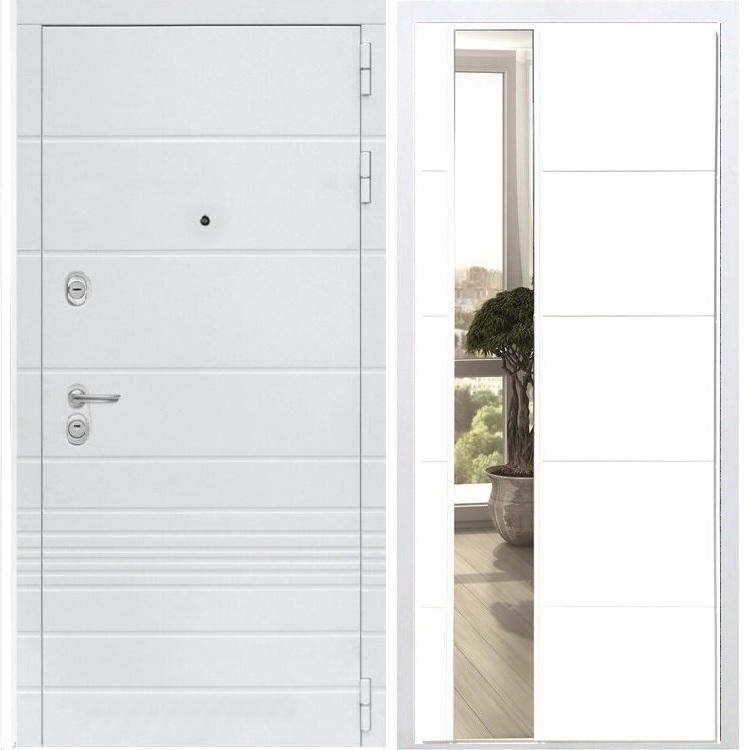 Входная белая дверь Италия с Зеркалом СБ -19 Белый силк сноу