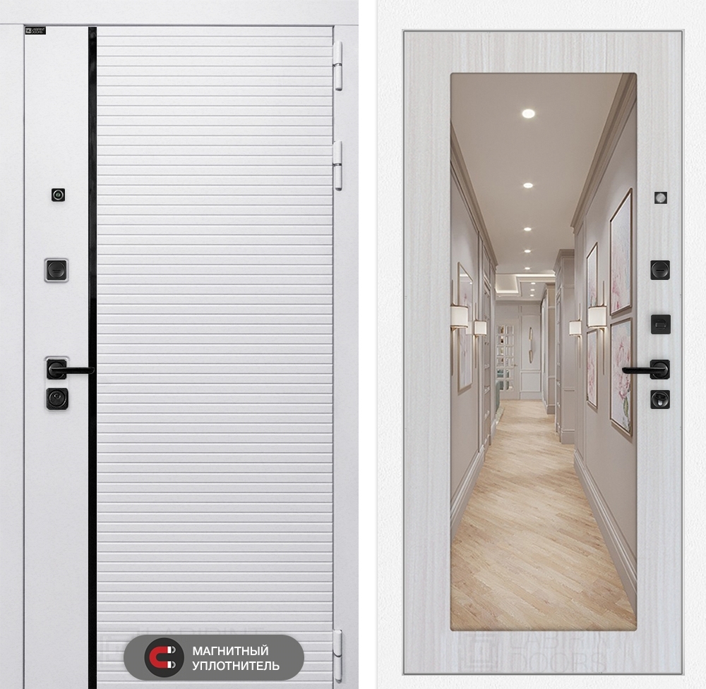 Входная белая дверь Лабиринт ROYAL с зеркалом 18 - Сандал белый