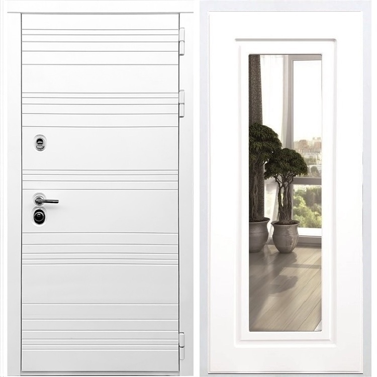 Белая входная стальная дверь Morrison ФЛ-120 с Зеркалом Белый силк сноу