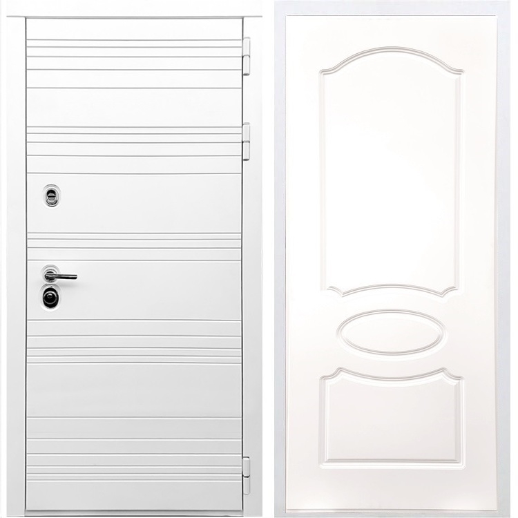 Белая входная стальная дверь Morrison ФЛ-128 Белый силк сноу