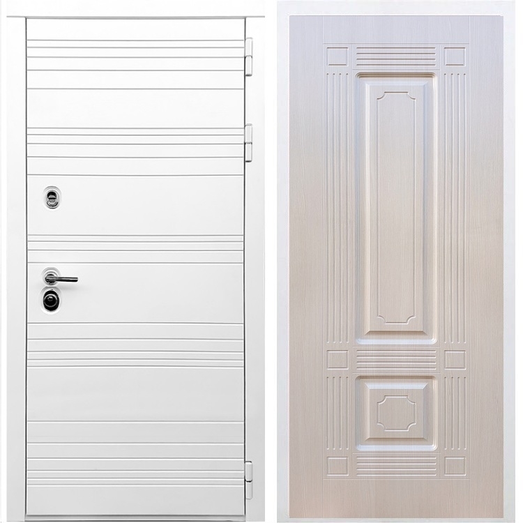 Белая входная стальная дверь Morrison ФЛ-2 Лиственница беж