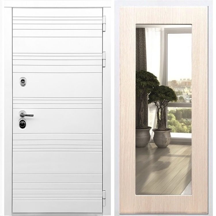 Белая входная стальная дверь Morrison Пастораль Дуб белёный с Зеркалом