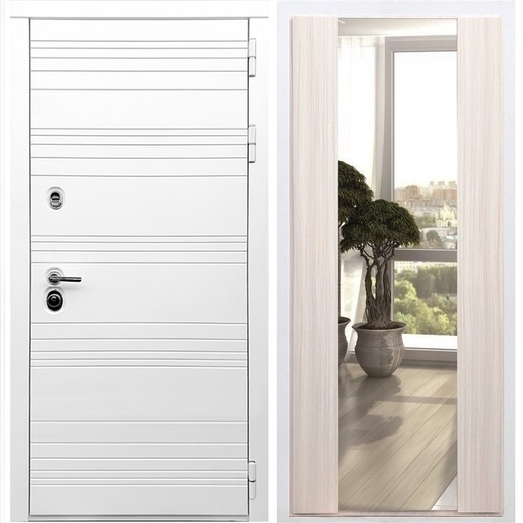 Белая входная стальная дверь Morrison с Зеркалом СБ -16 Беленый дуб