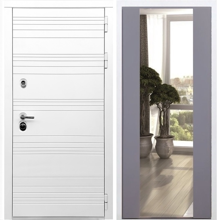 Белая входная стальная дверь Morrison с Зеркалом СБ -16 Силк титан