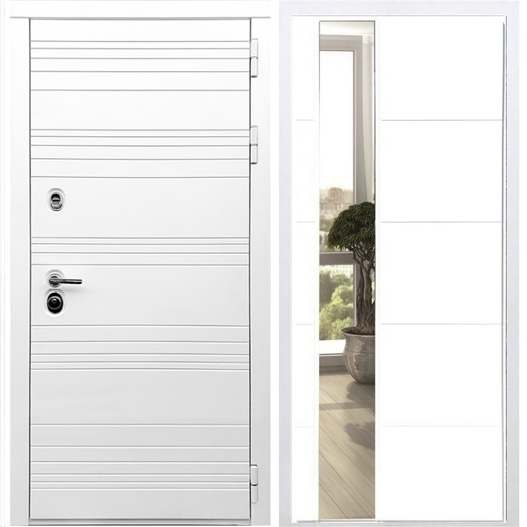 Белая входная стальная дверь Morrison с Зеркалом СБ -19 Белый силк сноу