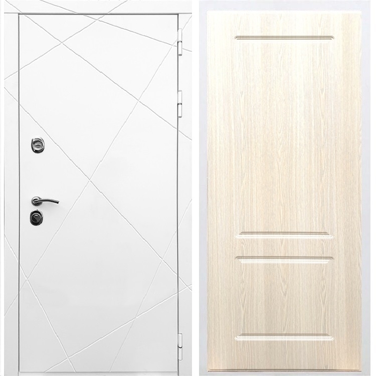Белая входная стальная дверь Олимпия ФЛ-117 Беленый дуб