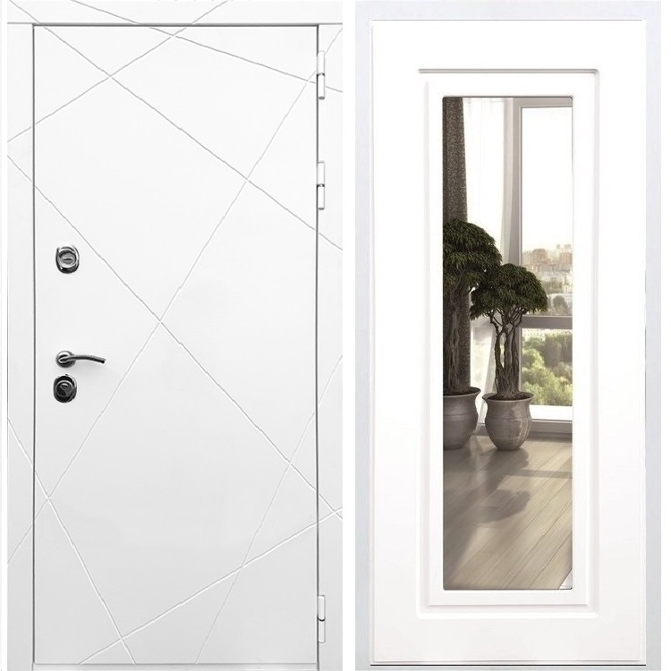 Белая входная стальная дверь Олимпия ФЛ-120 с Зеркалом Белый силк сноу