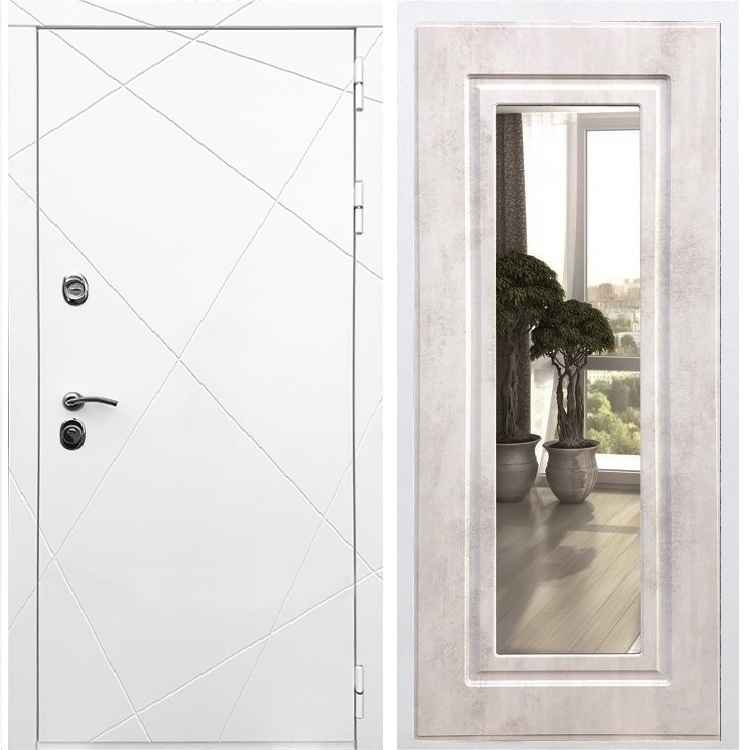 Белая входная стальная дверь Олимпия ФЛ-120 с Зеркалом Бетон светлый
