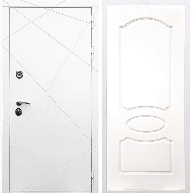 Белая входная стальная дверь Олимпия ФЛ-128 Белый силк сноу