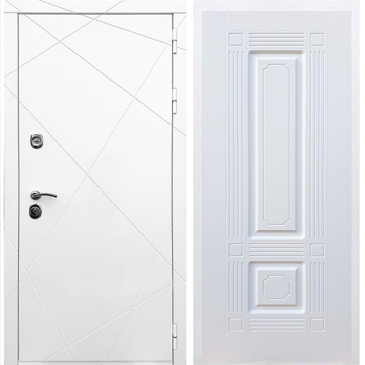 Белая входная стальная дверь Олимпия ФЛ-2 Белый силк сноу
