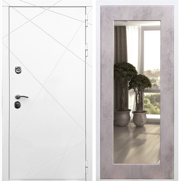 Белая входная стальная дверь Олимпия Пастораль Бетон светлый с Зеркалом