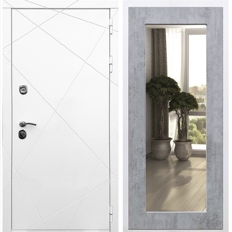 Белая входная стальная дверь Олимпия Пастораль Бетон тёмный с Зеркалом