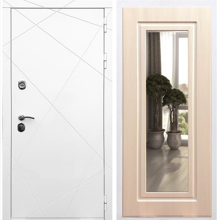 Белая входная стальная дверь Олимпия с Зеркалом Беленый дуб