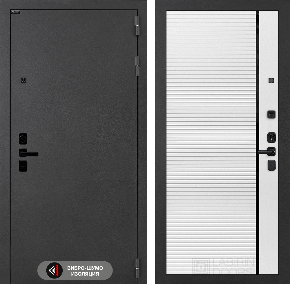 Входная стальная дверь Лабиринт ACUSTIC 22 - Белый софт, черная вставка