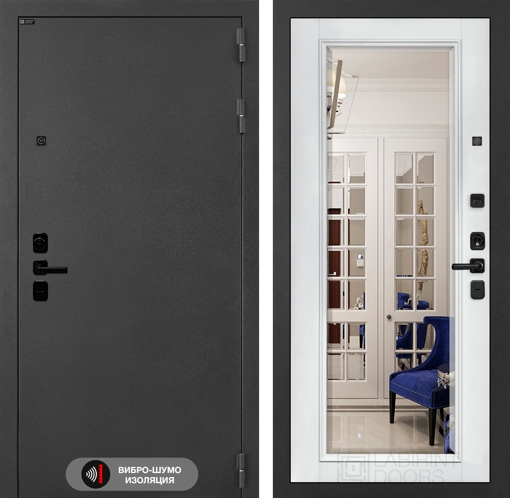 Входная стальная дверь Лабиринт ACUSTIC с Зеркалом Фацет - Белый софт